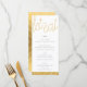 Personalize o menu do seu evento com estes bonitos cartões de menu! Cada placa apresenta um design de traçado de pincel de ouro pintado manualmente com uma inscrição cursiva moderna na frente e uma folha de fundo com um padrão de linha de estilo de deco de arte na parte de trás! Você pode personalizar todos os detalhes do menu. Esta placa é certamente um fator wow na configuração do seu mesa.