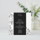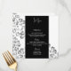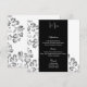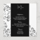 Este modelo da placa de menu é mostrado no documento básico com um design de impressão floral, script e texto padrão em branco. Cores Pretas, Cinzas Brancas Personalize os itens de menu para os seus clicando no botão personalizar, procure à direita e encontre as caixas apropriadas para mudar para suas informações. Desejo-lhe os melhores votos para o seu Dia de Casamento. Imagem do stock