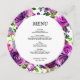 Esta placa MENU redonda foi projetada para coordenar com a Coleção de Buquês Românticos Roxo Floral deste compro. Para itens correspondentes, você pode gravar A126 na caixa de pesquisa deste compro ou apenas seguir o link https://www.zazzle.com/collections/romantic_purple_floral_bouquet_collection_a126-119096731530167698