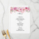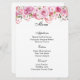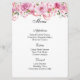 O cartão de menu é mostrado com um impressão de arte de rosas rosa adoráveis acentuadas no topo da placa, mostradas no papel básico do cartão branco. Script e texto padrão em preto. Personalize os itens do menu clicando no botão personalizar edição, procure à direita e encontre as caixas apropriadas para alterar suas informações. Desejo-lhe os melhores votos para o seu Dia de Casamento.