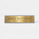 Essa elegante placa de nome da mesa exude sofisticação com seu simulado fundo de ouro escovado, fornecendo uma estética luxuosa e profissional. O design é limpo e clássico, com seu nome personalizado exibido de forma destacada em uma fonte de sans-serif escura e refinada, perfeitamente complementada pela sua profissão escolhida. O rico tom de ouro é enquadrado por elegantes bordas de classe no topo e no fundo, acrescentando um toque de talento contemporâneo e destacando ainda mais a informação central personalizada. Essa placa de nome é ideal para quem busca um toque distinto e personalizado para seu escritório ou espaço de trabalho, projetando uma imagem de credibilidade e sucesso.