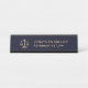 Eleve seu espaço profissional com nosso advogado profissional na caixa de nome do escritório de lei, com um emblema de logotipo em escala de justiça dourada que pode ser usado como está ou personalizado com seu logotipo. Perfeito para advogados, assistentes jurídicos, escritórios de advogados e profissionais da justiça, este nome personalizável adiciona um toque de elegância a qualquer ambiente de escritório.