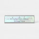 Um design com o nome de mesa do artista de maquiagem, com textura holográfica colorida e letra elegante de caligrafia.