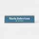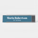 Esse design apresenta um negócio, um nome profissional, placas de material de escritório, executivo moderno, tipografia ousada, nome e título, com azul e branco, um estilo simples minimalista, mínimo e moderno.