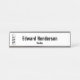 Você pode personalizar a placa de nome com seu nome e título em texto preto. Um poste de barbeiro está ao lado do texto.