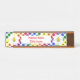 Este incrível sinal de mesa apresenta uma imagem design gráfica colorida arco-íris de uma abelha. A abelha tem um corpo amarelo com olhos negros, pernas e antenas e 5 listras no ventre, uma em vermelho, laranja, verde, azul e roxo. Há um texto colorido do arco-íris ao redor da abelha que diz "Bee orgulhosa Bee quem você é" Há também uma seleção de flores coloridas do arco-íris no fundo.