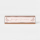 Linda forma de borboleta em textura com aparência de folha de ouro rosa (não real) junto com bordas com aparência de folha de ouro rosa na parte superior e inferior. Há também uma área de texto personalizável no meio. A cor do fundo é rosa suave. OBSERVAÇÃO: O DESIGN É UMA IMAGEM DIGITAL E SERÁ IMPRESSO NO PRODUTO.