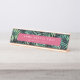 A placa de nome do chic desk tropical contém duas linhas de texto personalizado para seu nome e título ou nome comercial. Personalize com seus detalhes em letras brancas modernas em um retângulo rosa brilhante contrastante colocado em um fundo dramático de folhas botânicas e folhagem da selva.