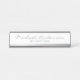 Placa branca Elegante profissional e placa prateada apresentando o nome no estilo de fonte do script moderno prateado e profissão no estilo de fonte de serifa clássico prateado, com borda prateada inferior, em fundo branco. Perfeito para um agente imobiliário, designer, advogado, consultor e muitas outras profissões. Nota: Os detalhes da folha são simulados no trabalho de arte. Este produto não contém detalhes em papel laminado.