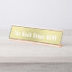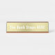 Uma placa de mesa divertida é um presente de novidade ideal para um membro da família, colega de trabalho ou chefe, numa cor de ouro claro e escrevendo branco. Sinta-se à vontade para mudar as palavras, "o Buck Stops Here" para se adequar às suas necessidades.