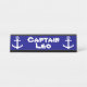 Uma âncora branca do barco é em ambos os lados do texto. Personalize com sua mensagem no texto branco (mostra: Captain Leo) em um fundo dos azuis marinhos.