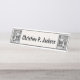 Esta mesa ou placa de nome pendurada é branca com uma ilustração a preto e branco de um pequeno capô de equitação vermelha encontrando o lobo no bosque em um quadro preto rico em cada extremidade. Personalize seu nome com o modelo.