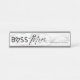 Personalize e decore o seu espaço de trabalho e dê a conhecer quem você é com a nossa divertida, na moda e moderna placa de nome personalizada da mesa "Chefe Mãe". O design apresenta uma cinza de luz na moda e fundo de mármore branco com "Boss Mom" desenhado em um trendy script de pincel preto & san serif typography com um coração na moda substituindo a letra "o" e personalizado por seu "também conhecido como"... seu nome.
