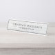 Placa personalizada com o nome e o título em uma textura de fundo de madeira de cinza clara impressa.