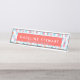 Dê à sua mesa uma personalidade com este nome de placa com um padrão de verificação de gingham azul-claro e branco, colheres de cozinha com cores brilhantes e com um nome e título da sua escolha em um fundo laranja. (o título é facultativo).