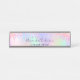 Uma tendência holográfica em cor rosa, roxo, verde de menta. Decorado com gotas em rosa e roxo. Personalize e adicione seu nome e título. O nome é escrito com um moderno estilo escrito à mão. Letras cor púrpura.
