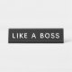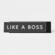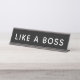 Placa de nome de mesa "Como um Chefe" preto e branco clássico. Pode ser totalmente personalizado com seu texto e cores personalizados.