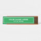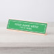 Crie sua própria placa de nome da mesa com seu nome e título. Personalizar e personalizar conforme desejado. Texto branco sobre um fundo verde elegante.