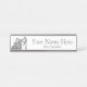 Cinza escuro unidade de bombeamento afligida do campo petrolífero do metal. Personalize esta placa de identificação da mesa com nome e título.