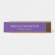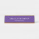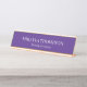Esta placa de identificação de mesa moderna e profissional fornece um aprimoramento elegante para adicionar à decoração do seu escritório. O texto branco está sobre um fundo roxo, mas as cores, a fonte e o tamanho do texto podem ser alterados de acordo com suas preferências.