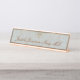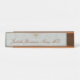 Our elegant name plate features a graceful, contemporary script on a soothing-hues jacquard background. Accented with the universal medical symbol (removable / replaceable with your alternative choice of image or symbol, if desired.) A perfect name plate for your desk at work, or home office desk, front reception desk, or on your wall or office door.