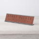 Personalize e personalize esta elegante e marrom escura, vegana, Placa de Nome da Mesa de couro. Design criado com 3 camadas de tipografia em diferentes tons para simular o aspecto gravado. Um acessório fabuloso para sua empresa, casa ou escritório escolar. Também uma placa de na moda e de mesa para sua escola de negócios ou escritório doméstico.