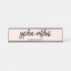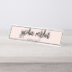 O nome da mesa da garota apresenta o nome na caligrafia do script de pincel.