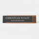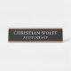 Showcase your professionalism with a custom, high-quality metal desk sign featuring a sleek silver, black, and white script/typography design. This stylish and timeless nameplate is perfect for offices, small businesses, consultants, entrepreneurs, and corporate professionals. Personalize it easily by entering your full name and job title—your live preview updates as you customize. An ideal gift for employees, managers, attorneys, accountants, real estate agents, auditors, brokers, executives, and more.