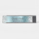 A cinza cintilante prateada cintilante se destaca nas bordas laterais, sobre uma folha metálica azul-clara, azul esfregada, ou de aço inoxidável, estilo ombre. As cores principais são azul claro, cinza de prata, prata, preto e branco. Placa personalizada de desktop com espaço para nome e cargo para ela. O estilo e o tamanho da fonte podem ser alterados, se necessário.