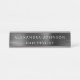 Placa de nome de empresa minimalista de aço inoxidável metálico preto com letra branca com nome de tipografia e profissão. A Prata de nome comercial moderna e elegante do Foil Metal pode ser personalizada com seu nome. Entre em contato com o designer para obter itens correspondentes personalizados.