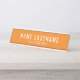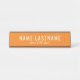 Personalize esta placa de nome da mesa minimalista de Na moda moderno com fontes brancas em um fundo cor laranja brilhante. Esta placa tem acabamento de rosa dourado, você pode mudar isso para duas outras opções, para acabamento de metal preto ou prateado.