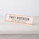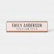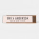 A moderna placa de nome rosa claro e preto da mesa inclui o nome do funcionário e o título do trabalho profissional em fontes de na moda. Pode ser totalmente personalizado com o seu texto e cores personalizados e a sua escolha de cor de quadro.