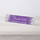 Garota cintilante prateado cintilante nas bordas laterais sobre uma sólida cor de fundo roxo real. Placa personalizada de desktop com espaço para nome e cargo. O estilo e o tamanho da fonte podem ser alterados, se necessário.