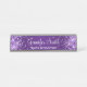Brilhante roxa cintilante nas bordas laterais sobre um fundo de gradiente roxo escuro e real A cor principal dos efeitos decorativos de brilho digital, gráfico ombre e caligrafia elegante são roxo escuro, roxo real, roxo mais claro e branco. Placa personalizada de desktop com espaço para nome e cargo. O estilo e o tamanho da fonte podem ser alterados, se necessário.