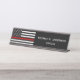 Placa de nome do bombeiro fino da linha vermelha - bandeira americana em cores de bandeira do bombeiro, design preto e vermelho moderno. Personalize com o nome e a classificação dos bombeiros. Esta placa personalizada de nome de bombeiro é perfeita para os departamentos de bombeiros, bombeiros e bombeiros. COPYRIGHT © 2020 Judy Burrows, Black Dog Art - Todos Os Direitos Reservados. Policial Personalizado Fino Blue Line Desk Plate