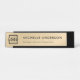 Eleve seu espaço de trabalho com este design de placa de nome de mesa dourada embebido, profissional e personalizável. Apresentando uma estética elegante e minimalista com tipografia clara para seu nome, título e logotipo da empresa, esta design projeta uma imagem de sofisticação e autoridade. As linhas limpas e a tela proeminente o tornam ideal para qualquer ambiente profissional, garantindo que você faça uma impressão polida.