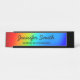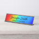 As cores holográficas brilhantes neste gradiente do espectro do arco-íris são o que a minha câmera captou enquanto tirava uma imagem macro aproximada de uma gota d'água em um DVD: aqua, ciano, rosa, azul, roxo, laranja, vermelho e amarelo. Você pode mover a foto ao redor para ver um design de ombre diferente, colorido do arco-íris. Placa personalizada de desktop com espaço para nome e cargo. O estilo e o tamanho da fonte podem ser alterados, se necessário.