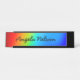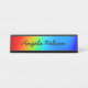 The bright holographic colors in this rainbow spectrum gradient are what my camera picked up while taking a macro close-up image of a water droplet on a DVD: aqua, cyan, pink, blue, purple, orange, red and yellow. You can move the photo around to see a different rainbow colored ombre design. Personalized desktop nameplate with room for name and job title. The font style and size can be changed if needed.