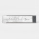 Faça sua empresa parecer mais profissional com um moderno script, uma placa branca para o nome da mesa de mármore. Esta placa de nome da mesa apresenta o nome no estilo de fonte e título do script moderno da cinza no estilo de fonte sans serif moderno em fundo de mármore branco. Perfeito para agente imobiliário, consultor, contabilista e muitas outras profissões.