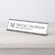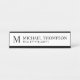 Faça sua empresa parecer mais profissional com uma placa de nome preto e branco. Esta placa de nome da mesa apresenta um monograma com nome e título no estilo de fonte de serif profissional preto em fundo branco. Perfeito para agente imobiliário, consultor, contabilista e muitas outras profissões.