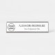 Consulte o profissional com uma simples placa de nome minimalista com o logotipo da sua empresa. Substitua o logotipo, o nome e o título do trabalho da empresa de amostra por você na barra lateral. Seu logotipo pode ser circular, quadrado ou de outra forma e colorido ou preto e branco. Perfeito para pessoas com nomes longos. Veja mais itens aos quais você pode adicionar seu logotipo na coleção Rocklawn Arts.