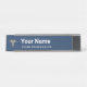 Personalize facilmente este Médico Personalizado, Enfermeiro ou Nameplate de Funcionário. Um simples design de empresa de saúde em cores azuis, douradas e brancas marinhos com o símbolo médico caduceus, fontes básicas e modernas sans-serif totalmente personalizáveis e um aspecto profissional e claro. O símbolo médico caduceus pode ser personalizado em qualquer cor. As placas de nomes estão disponíveis em estilos diferentes. Você também pode excluir o caduceus e adicionar seu próprio logotipo comercial, foto ou qualquer imagem. Sem ordem mínima.