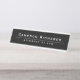Placa personalizada de nome de mesa com seu nome e título em letras em negrito, fontes masculinas em um plano de fundo preto