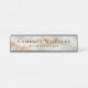 Placa de nome de mesa clássica com um fundo de mármore faux impresso e seu nome em uma fonte elegante e de estilo vintage com título ou nome de empresa abaixo.