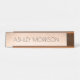 Esta placa conhecida caracteriza uma imagem cor-de-rosa do ouro do falso como o fundo e uma pia batismal elegante do estilo do deco para seu nome.