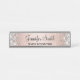 Garota cintilante prateado cintilante nas bordas laterais, sobre um gradiente moderno rosa claro. Placa personalizada de desktop com espaço para nome e cargo. O estilo e o tamanho da fonte podem ser alterados, se necessário.