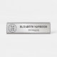 Placa de nome de mesa metálica de falso prata moderna com o logotipo da sua empresa ou organização. Adicione um nome e um título em tipografia simples.