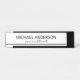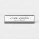Placa de Nomes de Preto e White Desk Elegante profissional com nome no estilo de fonte e profissão de sans serif modernos preto no estilo de fonte de script moderno preto, com borda negra inferior, em fundo branco. Perfeito para um agente imobiliário, designer, advogado, consultor e muitas outras profissões.