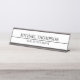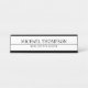 Faça sua empresa parecer mais profissional com um elegante prato preto e branco. Esta placa de nome da mesa apresenta o nome e o título no estilo de fonte de serif profissional preto com linha preta no meio sobre fundo branco. Perfeito para agente imobiliário, consultor, contabilista e muitas outras profissões.