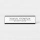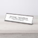 Faça sua empresa parecer mais profissional com um elegante prato preto e branco. Esta placa de nome da mesa apresenta o nome e o título no estilo de fonte de serif profissional preto com linha preta no meio sobre fundo branco. Perfeito para agente imobiliário, consultor, contabilista e muitas outras profissões.